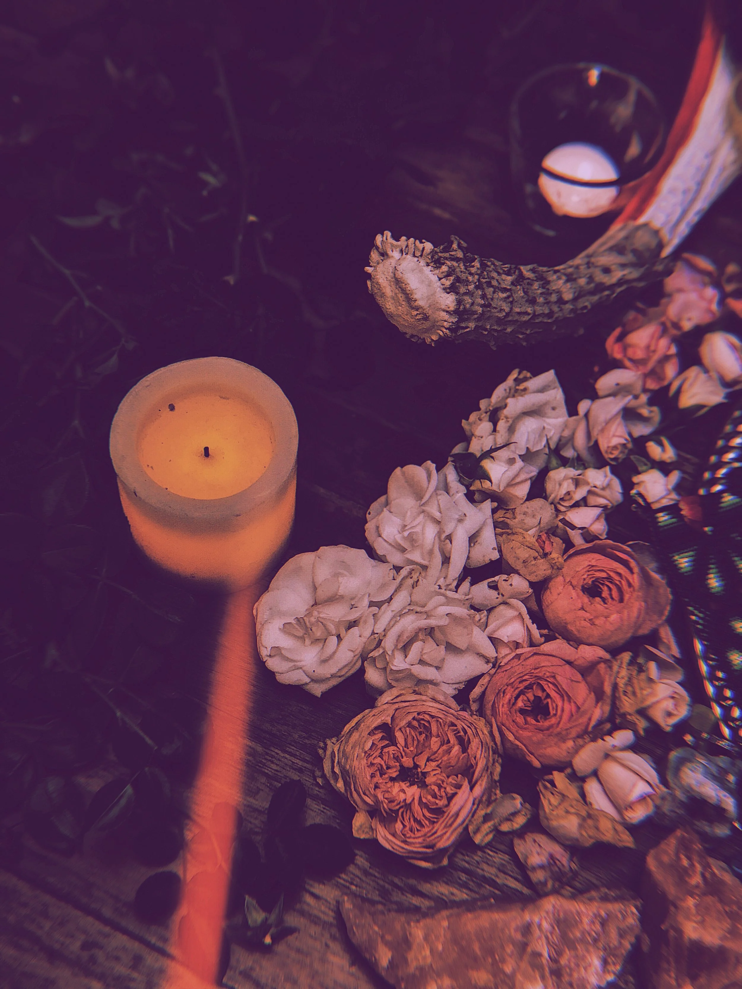 Create a sacred space space — Use crystals, feathers, photos of memories, poems, books, plants, candles, oils, etc. to create this space. Cleanse the space with palo santo or sage. If possible, make this space outside or near a window for the moon’s energy to flow.