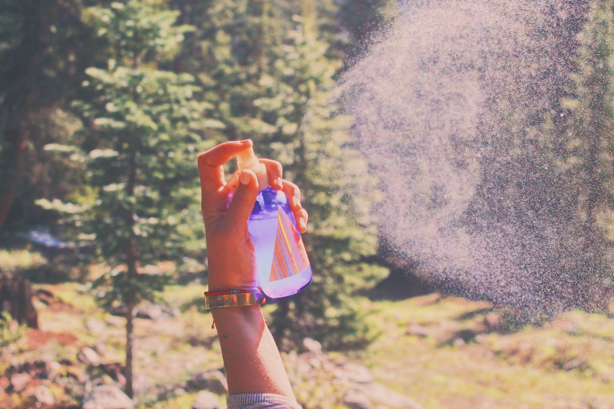 using skincare & magical mists in nature